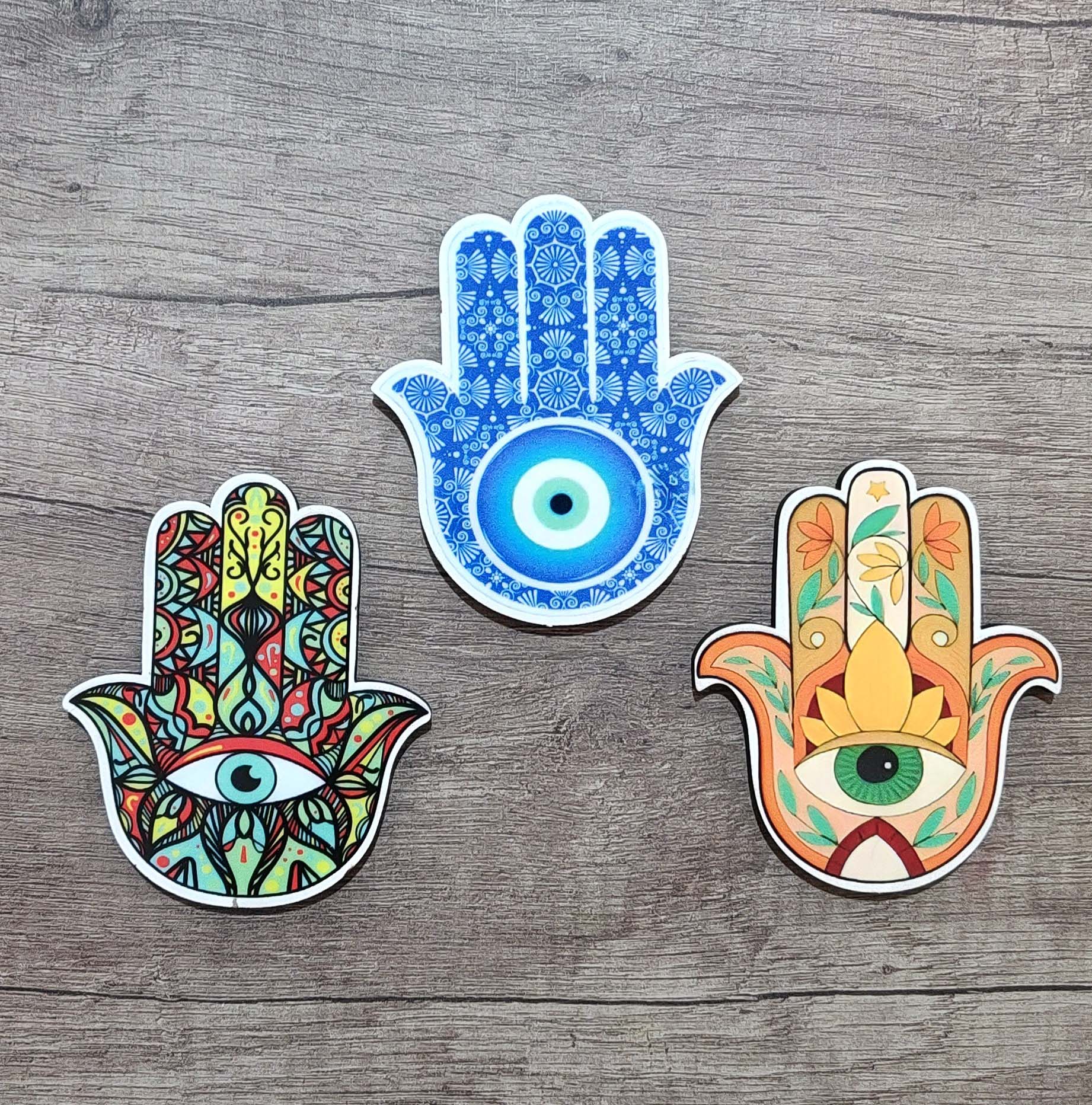 Protege tu hogar y transmite buena energía con este imán mano de Fátima. Impreso con tecnología UV DTF, su diseño detallado y vibrante no solo decora tu nevera, sino que también te ofrece una poderosa simbología de protección y bienestar. Perfecto para atraer paz y armonía a tu vida, este imán es el detalle ideal para tu hogar o como regalo especial.
